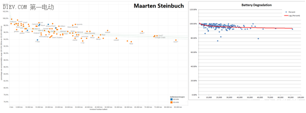 實際上的這個壽命衰減過程是比較復雜的,有外部因素和內部因素,通過里程來計量的時候又受到駕駛習慣、車速、空調和計量誤差等,所以只能作為參考。