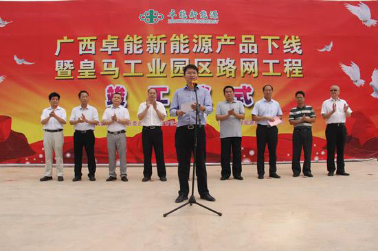 廣西卓能新能源科技有限公司于2013年8月簽約落戶在欽州皇馬工業(yè)園一區(qū),主要建設(shè)50億安時(shí)鋰離子動(dòng)力電池及10萬套新能源汽車電源產(chǎn)業(yè)化項(xiàng)目。產(chǎn)品廣泛應(yīng)用于手機(jī)、筆記本電腦、電動(dòng)自行車、電動(dòng)汽車等的動(dòng)力電能。該項(xiàng)目總規(guī)劃用地2000畝,總投資100億元。