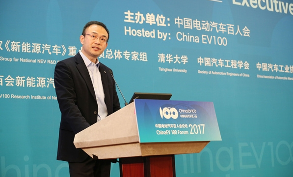 北京新能源汽車(chē)股份有限公司總經(jīng)理鄭剛在電動(dòng)車(chē)百人會(huì)上演講