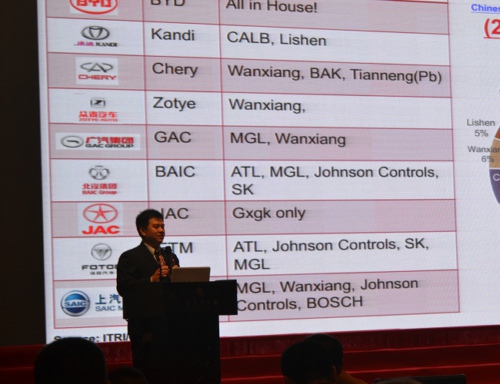 韓國來的Mr. Kenny Kim分析了韓國主要電池生產(chǎn)商的競爭力和市場戰(zhàn)略。中國化學(xué)與物理電源行業(yè)協(xié)會(huì)行業(yè)研究專家張謙分析了2015年中國新能源汽車動(dòng)力電池市場和技術(shù)趨勢。佛山市金銀河智能裝備有限公司的覃勇講解了佛山金銀河的鋰電池自動(dòng)化生產(chǎn)裝備及先進(jìn)生產(chǎn)工藝。浙江南都電源動(dòng)力股份有限公司總經(jīng)理李小平講解了鋰電池漿料制造工藝的演變及進(jìn)步。