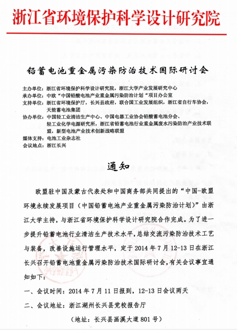 鉛蓄電池重金屬污染防治技術國際研討會
