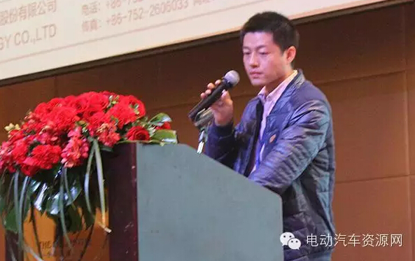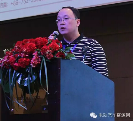 惠州億緯鋰能股份有限公司副總經理黃紅良做主題為“車用三元動力電池的應用與發展”的演講。