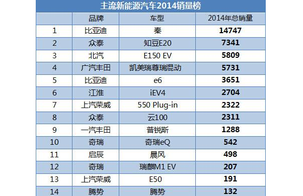 私人消費市場“破冰”的背后是,眾多車企紛紛加大對新能源汽車的投入和推廣。以自主品牌為例,目前共有8家自主品牌開始面向私人市場推出新能源汽車,自主品牌集體努力帶來的結果就是——2014年自主品牌新能源車累計銷量達5.55萬輛,占據了中國新能源車總銷量的75%之多,其中也涌現出比亞迪秦、江淮IEV4、榮威550 Plug-in等口碑銷量。其中,比亞迪以1.8萬的銷量,成為自主品牌新能源乘用車銷量榜首。