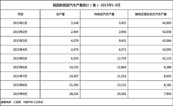 根據中汽協公告,今年9月,國內新能源汽車生產28324輛,銷售28092輛,同比分別增長2.1倍和2.2倍。其中純電動汽車產銷分別完成20365輛和19228輛,同比分別增長2.7倍和2.9倍;插電式混合動力汽車產銷分別完成7959輛和8864輛,同比分別增長1.1倍和1.3倍。