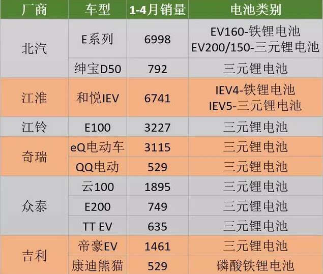 目前,北汽新能源、江淮、江鈴、奇瑞、眾泰等已上市的新能源乘用車中,絕大部分車型均已開始采用三元鋰電池。