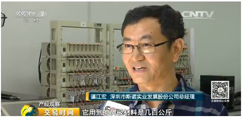 在此背景下,CCTV-2財經頻道《交易時間》欄目深入到鋰電材料企業展開詳細報道。2017年1月11日,該欄目播出了對鋰電材料領軍企業/G20-鋰電峰會成員企業新宙邦(300037)、星源材質(300568)、深圳斯諾等企業的采訪。在新的國家政策形勢下,鋰電材料行業將呈現出怎樣的市場走勢,這些企業高層也給出了權威解答。