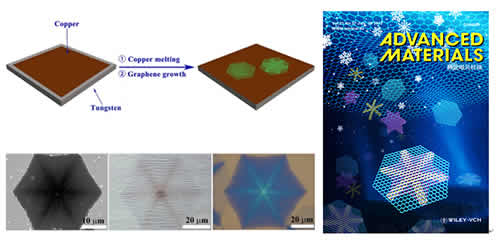 圖3 單晶十二角石墨烯(左)及《先進材料》內封底(右)
