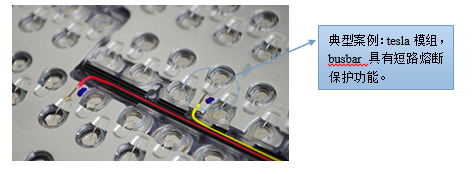 另外一種是電芯外部增加fuse的設(shè)計方案,比如在模組的busbar上設(shè)計薄弱的過流界面。模組短路時,busbar會熔斷,從而起到短路斷開功能。這樣設(shè)計有一個優(yōu)點:短路斷開時,電芯不會有反向電壓。同樣的,在pack系統(tǒng)中,該反向電壓會比較高,busbar熔斷常伴隨著拉弧等安全問題。