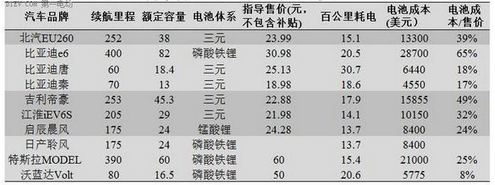 LG化學(xué)動(dòng)力電池事業(yè)部首席執(zhí)行官Prabhakar Patil透露,“大多數(shù)電動(dòng)汽車的電池成本約在400美元/kWh,特斯拉是240美元/kWh”,按照ASEC和松下給出的公開信息,大多數(shù)都在350-400美元/Kwh。新能源汽車成本主要由三大部分構(gòu)成:電池、電機(jī)、電控系統(tǒng),電池系統(tǒng)成本占到了總體的30%-50%,如果沒有國家補(bǔ)貼,這些汽車與同等價(jià)位的燃油車在性能和品牌上毫無競爭力可言。電池確實(shí)太貴!