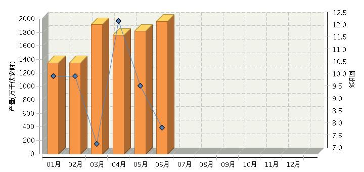 根據(jù)國家統(tǒng)計(jì)局公布數(shù)據(jù),2014年1~6月,全國鉛酸蓄電池行業(yè)累計(jì)完成產(chǎn)量10,737.78萬千伏安時(shí),同比增長(zhǎng)8.10%。其中6月份完成產(chǎn)量1962.62萬千伏安時(shí),同比增長(zhǎng)8.07%。2014年全國鉛酸蓄電池行業(yè)月度產(chǎn)量及同比如下圖所示。
