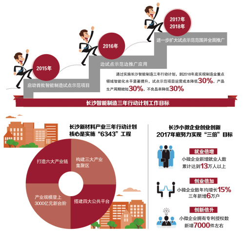 昨日,“中國(guó)制造2025長(zhǎng)沙在行動(dòng)”啟動(dòng),《長(zhǎng)沙智能制造三年(2015-2018年)行動(dòng)計(jì)劃》、《長(zhǎng)沙市新材料產(chǎn)業(yè)發(fā)展三年(2015-2018年)行動(dòng)計(jì)劃》、《關(guān)于支持發(fā)展創(chuàng)客空間的若干意見》,以及“小微企業(yè)創(chuàng)新創(chuàng)業(yè)”等系列政策全新發(fā)布,開始實(shí)施。