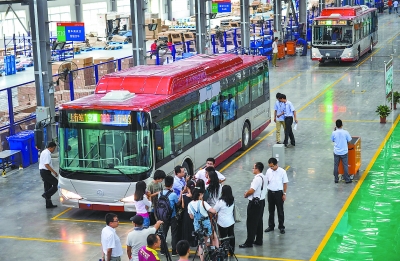 8月31日,兩輛“金馬”牌純電動公交車即將完成組裝。當日,位于天津市武清區的天津比亞迪新能源客車基地正式竣工,首臺“金馬”牌純電動公交車在這里下線。該基地由天津市公交集團和比亞迪汽車工業有限公司合資合作建設,為華北地區首個新能源大型客車生產基地,目前一期建設的聯合廠房預計可年產3000輛新能源汽車。