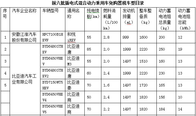 插電式混合動力方面,前六批共有26款車型入選免購置稅目錄。其中,比亞迪入選14款車型,廣汽入選6款車型,上汽入選2款車型,華晨寶馬、一汽、浙江豪情汽車、江淮汽車分別入選1款車。