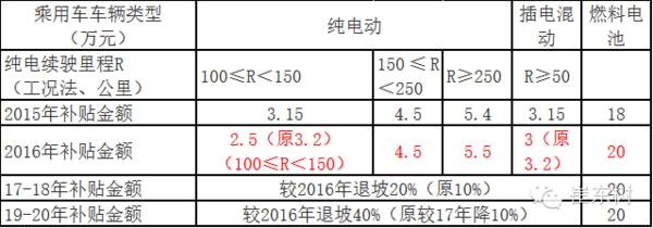 鼓勵長續駛里程車型的最低純電動工況續駛里程由原來的80公里上升到100公里,這也是促進電動車提升實用的體現。純電動里程100≤R<150的占比較小,而且不是鼓勵方向。純電動里程在150至250之間補貼與2015年持平,純電動里程超過250公里的車型補貼金額較2015年提高0.1萬元,顯現出鼓勵新能源車型的政策趨向。這也對未來的退坡機制較好測算。