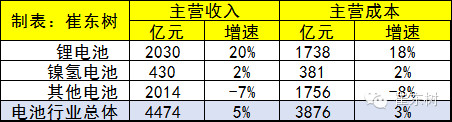 電池行業收入增長較好