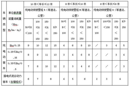 注:純電動客車(純電動公交車)補貼標準以2016年為基準,2017-2018年補助標準在2016年基礎上下降20%,2019-2020年補助標準在2016年基礎上下降40%,補貼長度以10—12米純電動客車為標準車,其他長度純電動客車補貼標準按照上表單位載質量能量消耗量和純動車續駛里程劃分,插電式混合動力客車(含增程式)補貼標準按照上表純動車續駛里程劃分,其中,6米及以下客車按照標準車0.2倍給予補助;6米<車長≤8米客車按照標準車0.5倍給予補助;8米<車長≤10米客車按照標準車0.8倍給予補助;12米以上、雙層客車按照標準車1.2倍給予補助。