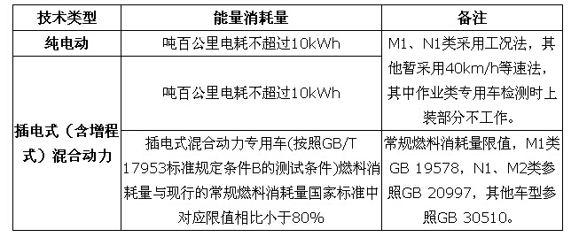 二、純電動、插電式混合動力(含增程式)專用車、貨車能量消耗量須符合以下要求: