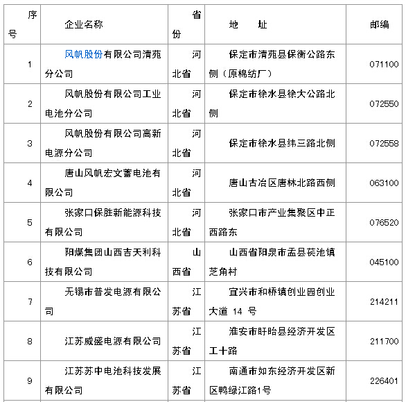 4月6日,工信部公示符合《汽車動力蓄電池行業規范條件》企業目錄(第三批),天津捷威動力、深圳比克動力電池、山西皇城相府中道能源、河南新太行電源、浙江天能能源、東莞邁科新能源、星恒電源、山東威能環保電源八家企業列入其中。 注:因動力蓄電池系統標準