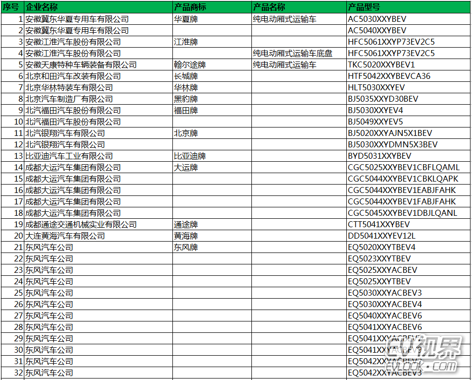 序號(hào) 企業(yè)名稱 《目錄》序號(hào) 商標(biāo) 產(chǎn)品名稱 產(chǎn)品型號(hào) 1 中國第一汽車集團(tuán)公司 1 解放牌 載貨汽車 CA1048 載貨汽車底盤 CA1085、CA1045、CA1250、CA1048、CA1200、CA1180 自卸汽車 CA3251 純電動(dòng)城市客車 CA6124 純電動(dòng)客車底盤 CA6124、CA6640 消防車底盤 CA