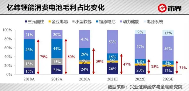 據興業證券的研究報告顯示,從2018年到2020年,消費電池為億緯鋰能貢獻的毛利,占比從79%下滑至59%。億緯鋰能只有在動力電池領域殺出一片戰績,才能繼續把故事講下去。