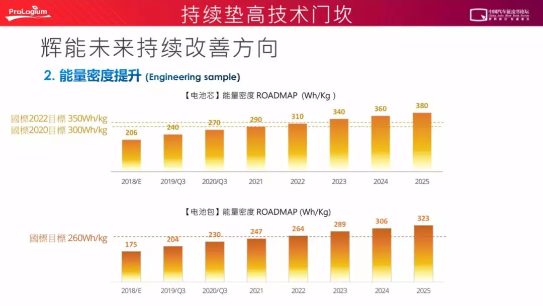 我們現在已經有40個百萬瓦時的中試線,在2017年完成卷式生產,接下來我們大概在2020年的時候會開始完成我們1GWh產線的試車,大概在2021年的年初會進行大量量產。我們所推出來的產品都會比TOYOTA稍微快一點,它達到450瓦時/公升,我們能夠達到680瓦時/公升。那剛才說的成組效率基本上大家都相同的時候,我們就會有一定程度的領先。