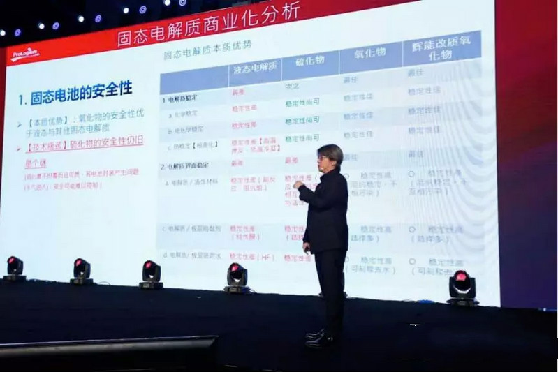 在技術層面,氧化物是他最為看好的固態電解質,其在安全性方面要更有優勢。“從氧化物安全性上來講,要優于液態電解質和其他固態電解質,這一點基本上是毋庸置疑的。”
