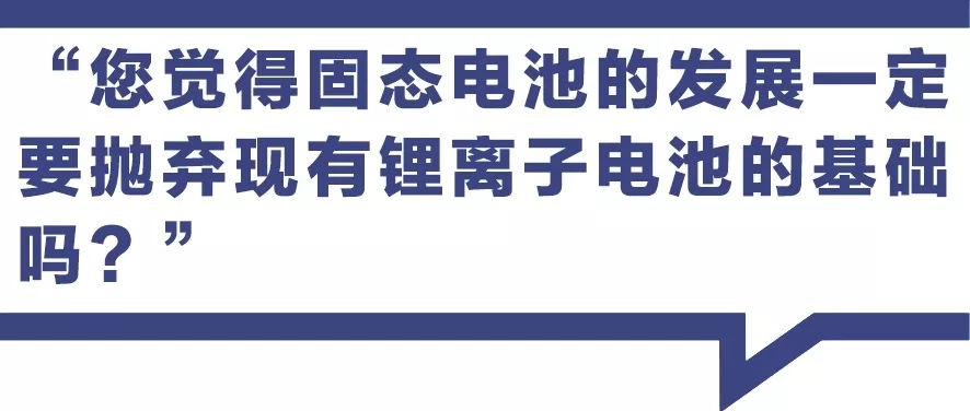 我覺得恰恰相反。對于固態電池,我希望不要完全甩掉現在的鋰離子電池,最好在鋰離子電池的基礎上進行改進,這樣發展起來會很快,也會很順暢。而且從目前的形勢來看,我們也需要做這方面的工作。