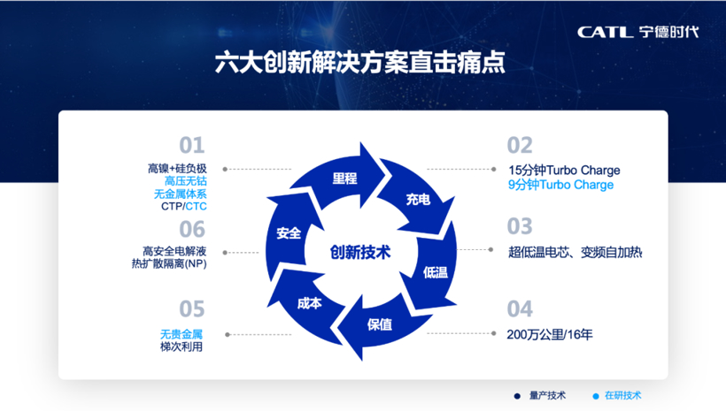 通過創(chuàng)新和研發(fā),我們不斷提升動力電池在里程、充電、低溫、保值、成本、安全等六大維度的性能和優(yōu)勢,高鎳加硅負極已經(jīng)可以量產(chǎn),CTP也已經(jīng)量產(chǎn)。