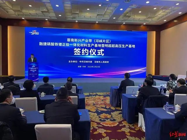12月23日,由中共邛崍市委、邛崍市人民政府主辦,蓉南新興產業帶(邛崍片區)——融捷磷酸鐵鋰正極材料、明超超高壓項目集中簽約儀式在蓉舉行。