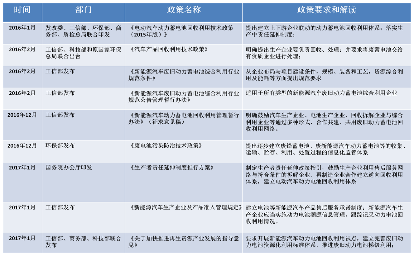 此外,隨著動力電池報廢潮來臨,2018年開始,多部針對性的政策陸續(xù)發(fā)布。他說:“2018年2月,工業(yè)和信息化部、科技部、環(huán)境保護(hù)部、交通運輸部、商務(wù)部、質(zhì)檢總局、能源局七部委聯(lián)合印發(fā)《新能源汽車動力蓄電池回收利用管理暫行辦法》,要求加強(qiáng)新能源汽車動力蓄電池回收利用管理,規(guī)范行業(yè)發(fā)展,推進(jìn)資源綜合利用,保護(hù)環(huán)境和人體健康,保障安全,促進(jìn)新能源汽車行業(yè)的持續(xù)健康發(fā)展。”