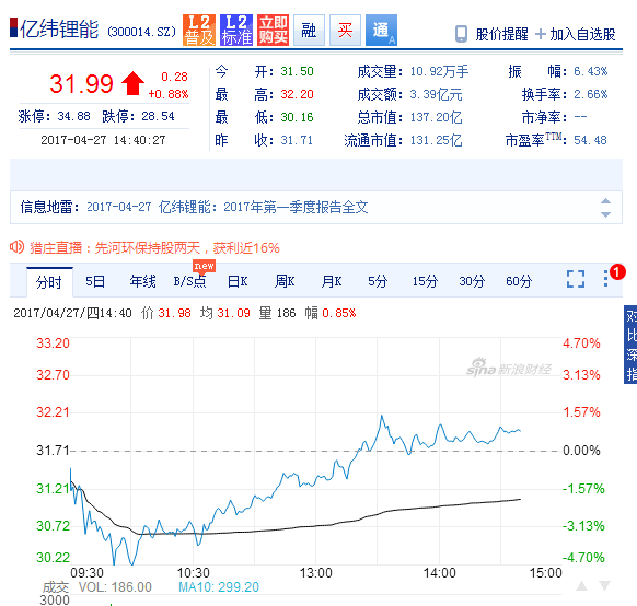 億緯鋰能:上半年業績增161% 鋰離子電池成新增長極2017-08-04 14:39