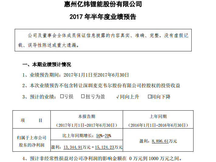 億緯鋰能4月27日發(fā)布2017年一季報(bào),一季度公司實(shí)現(xiàn)營(yíng)業(yè)收入5.7億元,同比增長(zhǎng)47.82%