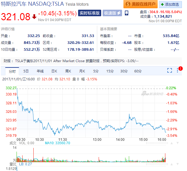 特斯拉股價被指太荒唐 或跌三分之二到100美元2017-11-05 21:34