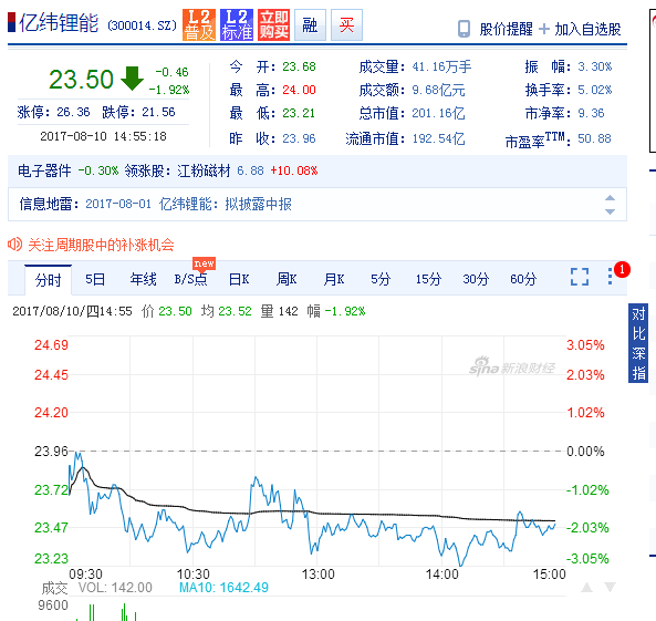 2017年上半年億緯鋰能實現收入13.44億,同比增長63.65%,實現歸屬上市公司股東的凈利潤2.33億元,同比增長161.37%,扣非后歸屬上市公司股東凈利潤1.66億,同比增長95.92%,對應EPS為0.27元。