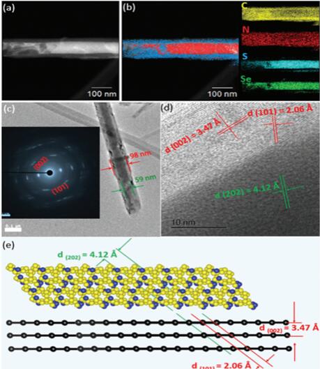 電池之一。然而,鋰硫電池尚存在著導(dǎo)電性差、容量衰減過(guò)快、活性物質(zhì)利用率低以及安全性能差等諸多問(wèn)題, 這些問(wèn)題使其實(shí)用化進(jìn)程受到了嚴(yán)重的阻礙。 其主要原因是,鋰硫電池在充放電過(guò)程中易形成可溶于電解液的多硫化物,多硫化物穿梭造成活性物質(zhì)減少。為了獲得穩(wěn)定性好、比容量高的硫正極材料,常用的解決方法是采用導(dǎo)電骨架為載體,在提高導(dǎo)電性的同時(shí)抑制多硫化物的穿梭,使其錨定在正極處。 而相比于鋰硫電池,鋰硒電池具有相比擬的體積容量密度 3253 Ah L-1(S: 3467 Ah L-1),且硒相對(duì)于硫具有更高的電導(dǎo)率以及更好的循環(huán)穩(wěn)定性。然而,硒卻存在理論質(zhì)量比容量較低(約 670 mAh g-1)的缺陷。硫化硒雖然是一種兼有硫和硒各自優(yōu)勢(shì)的新型電極材料, 但仍然存在著導(dǎo)電性低的缺陷,且循環(huán)穩(wěn)定性雖然與鋰硫電池相比有所提高,但仍然未達(dá)到人們希望的水平。因此,開(kāi)發(fā)一種結(jié)合硫和硒各自優(yōu)勢(shì)的新型電極材料具有重要的理論意義和現(xiàn)實(shí)價(jià)值。