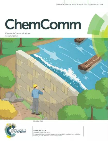 傳統鋰離子電池均采用液態電解質,而液態電解質本身的性質直接影響到其安全性能。固態鋰電池能夠解決一部分安全問題。但由于固態顆粒間的電導率低,固態電池中的電導率一直不理想,直到關于運用MOF作為框架主體,鋰離子液體作為離子傳輸客體的類固態電解質(MOF-IL)的研究報道,給固態電池開辟了新的研究視角。近日,北京大學深圳研究生院新材料學院潘鋒教授團隊基于這一視角,進一步提高了該類固態電解質的安全性能及其離子傳輸性能。研究成果近期發表于Chemical Communications,題為“Enhanced lithium dendrite suppressing capability enabled by a solid-like electrolyte with different-sized nanoparticles”(Chem. Commun., 2018,54, 13060-13063;natureindex期刊 DOI: 10.1039/c8cc07476c),并被作為封面文章highlight推薦。