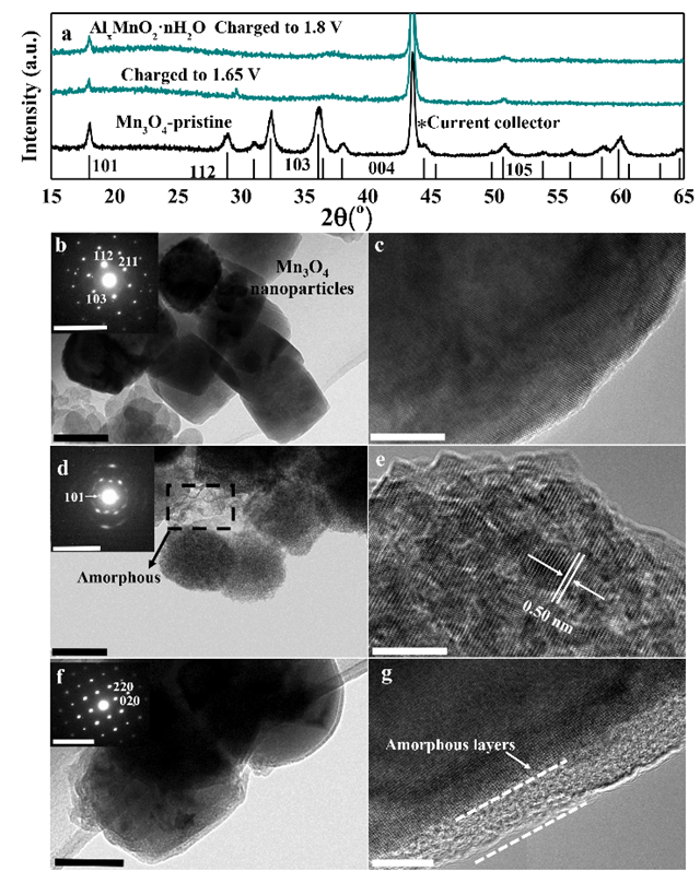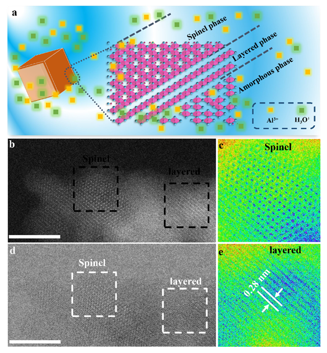 該工作首次將尖晶石-層狀轉化反應應用于水系三電子電池體系中,為鋁離子電池電極材料及新型電解液的開發提供了新的路徑,展現了過渡金屬氧化物電極材料在構筑高能量鋁離子電池體系方面的應用潛力,為實現高安全高性能的大型儲能系統提供了新思路和新方法。