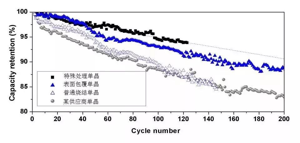 經過特殊熱處理或者表面包覆技術的循環性能超越普通的811材料