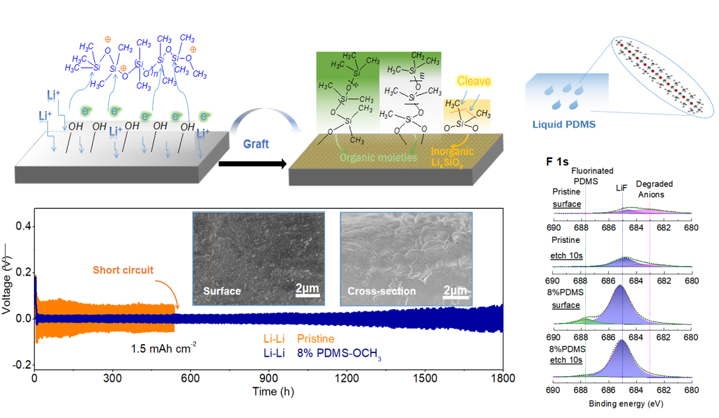 液態聚二甲基硅氧烷的界面原位催化嫁接以實現無枝晶的鋰電鍍和高可逆的鋰金屬