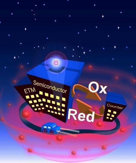 在電解質(zhì)的兩個界面上,銅離子發(fā)生氧化還原反應(yīng),能將低能電子帶回半導(dǎo)體層,從而使該過程重新開始循環(huán)。