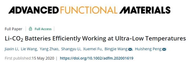 參考文獻(xiàn):Li-CO2 Batteries Efficiently Working at Ultra-Low Temperatures. Adv. Funct. Mater. 2020, 2001619. DOI:10.1002/adfm.202001619