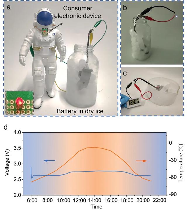 圖5. 超低溫Li-CO2電池的應(yīng)用演示。