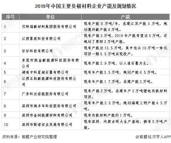 2、負(fù)極材料:2019年產(chǎn)量約在25萬噸,行業(yè)企業(yè)競爭格局變化不大