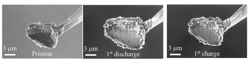 當(dāng)測量電池的壽命周期,即可以充放電多少次時(shí),研究人員采用了阿貢國家實(shí)驗(yàn)室先進(jìn)光子源(APS)和納米材料中心(CNM),這兩個(gè)都是能源部科學(xué)用戶設(shè)施辦公室下屬機(jī)構(gòu)。采用APS現(xiàn)場存儲環(huán)光源X射線衍射以及CNM的現(xiàn)場掃描電子顯微鏡,該團(tuán)隊(duì)可以觀察到電池反復(fù)充放電時(shí),陽極相位和體積的變化情況。