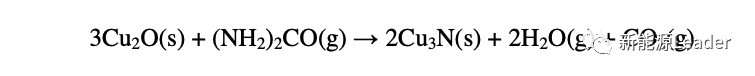 實驗中氮化亞銅的合成方法為采用Cu2O與尿素在惰性氣氛中,在190℃條件下反應8h,具體反應如下所示