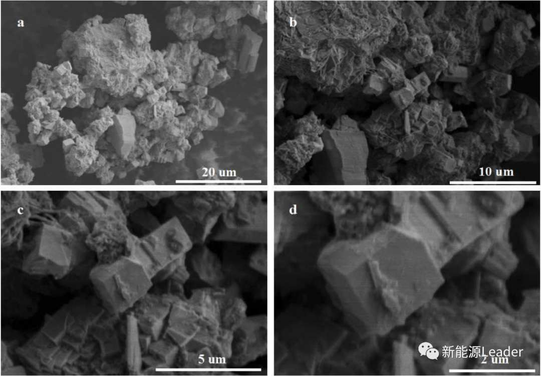 下圖為Cu3N的掃描電鏡圖片,從圖中能夠看到Cu3N粉末呈現六面體結構,表面附著一些殘余的Cu2O。