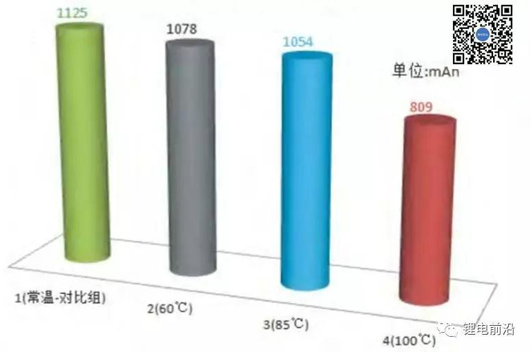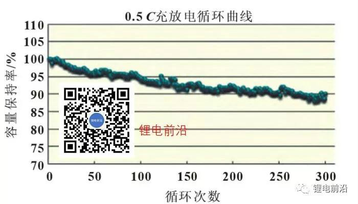 由圖5可知,取分容后新電池經85℃48h反復沖3次,模擬造成熱沖擊接近脹氣邊緣狀態,電池的300周容量保持率仍>85%,循環性能佳。