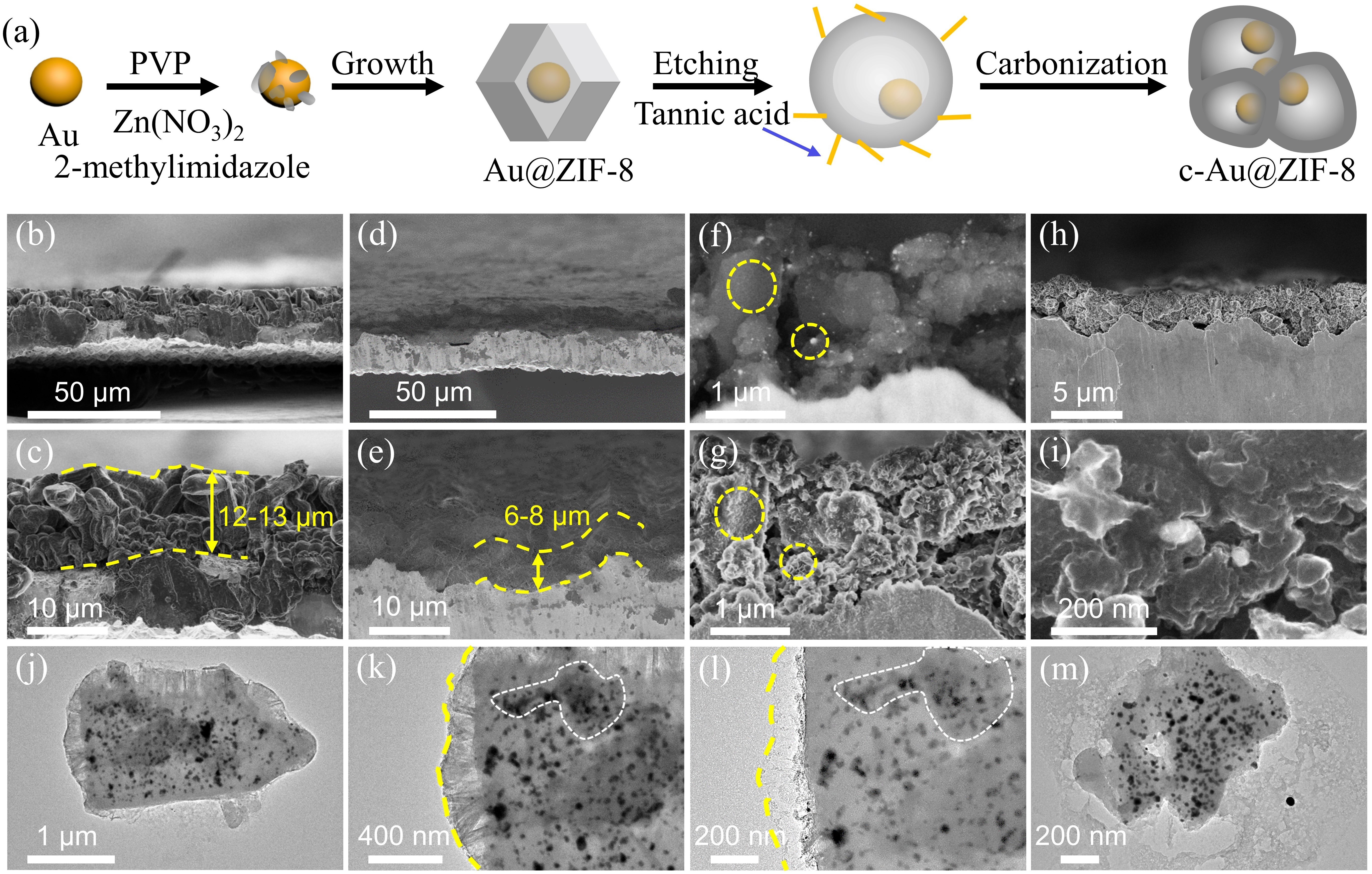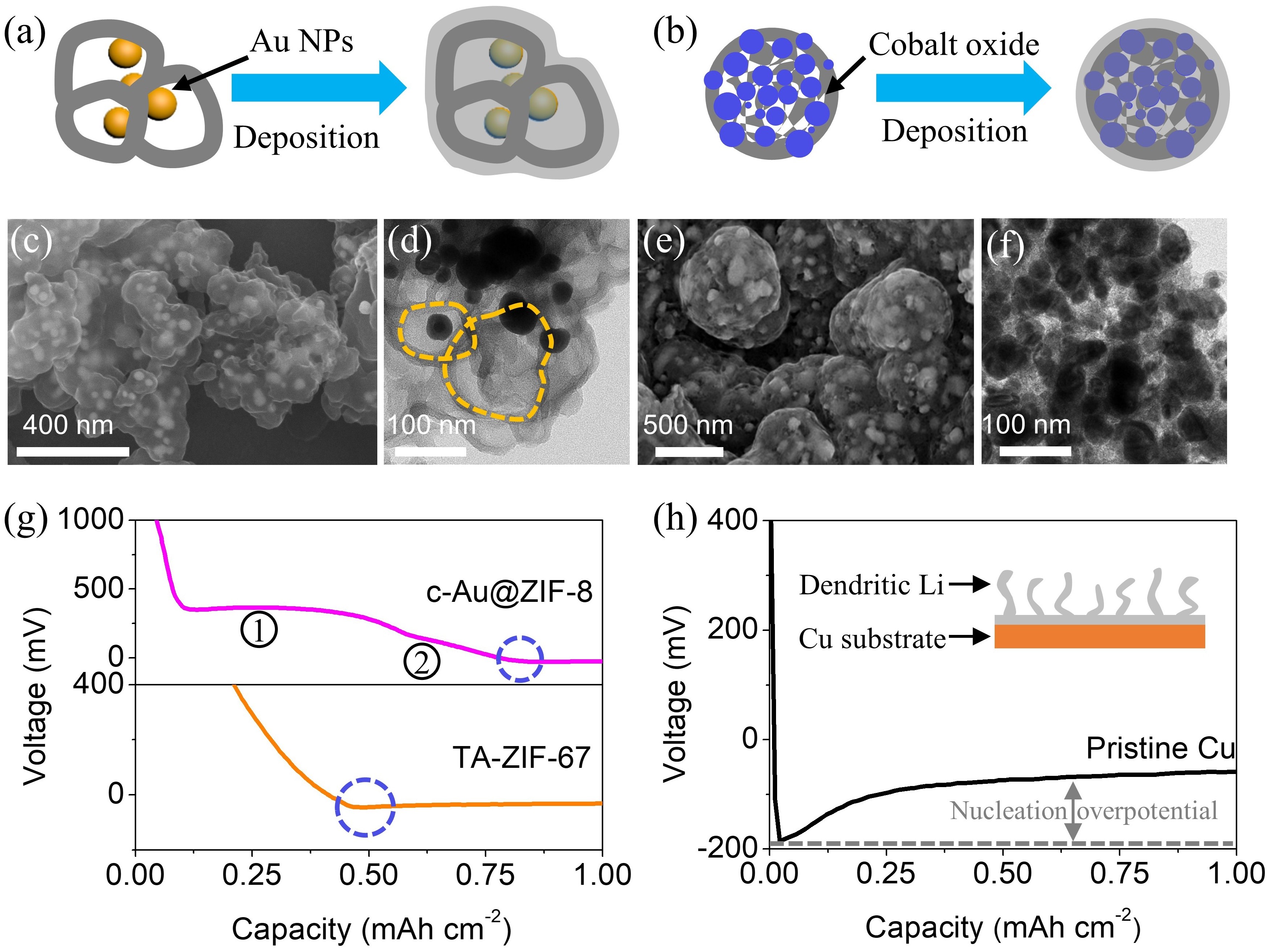 圖2. c-Au@ZIF-8的合成示意圖及其對鋰金屬沉積模式和織構的調控