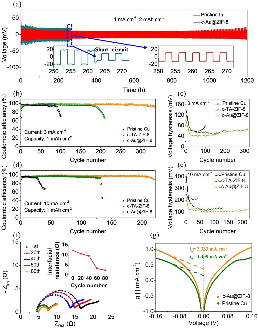 圖3. 基于c-Au@ZIF-8的對稱和非對稱電池性能及其界面動力學分析