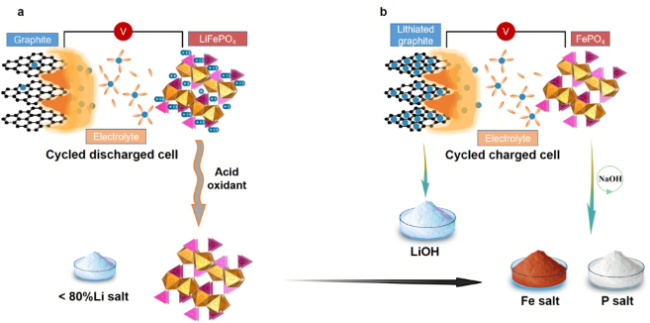 圖2.室溫下從充電態(tài)廢舊磷酸鐵鋰電池中回收提取單個元素示意圖